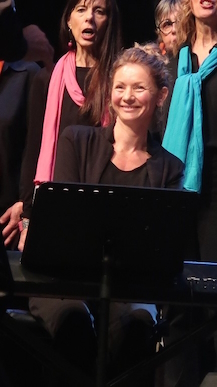La diversité des pupitres des voix s’accorde sur un accompagnement de musique enregistrée, de musique vivante par la présence de Olha Muhnetsian au piano et parfois en présence d’un orchestre (guitare, basse, batterie et un voire deux claviers).